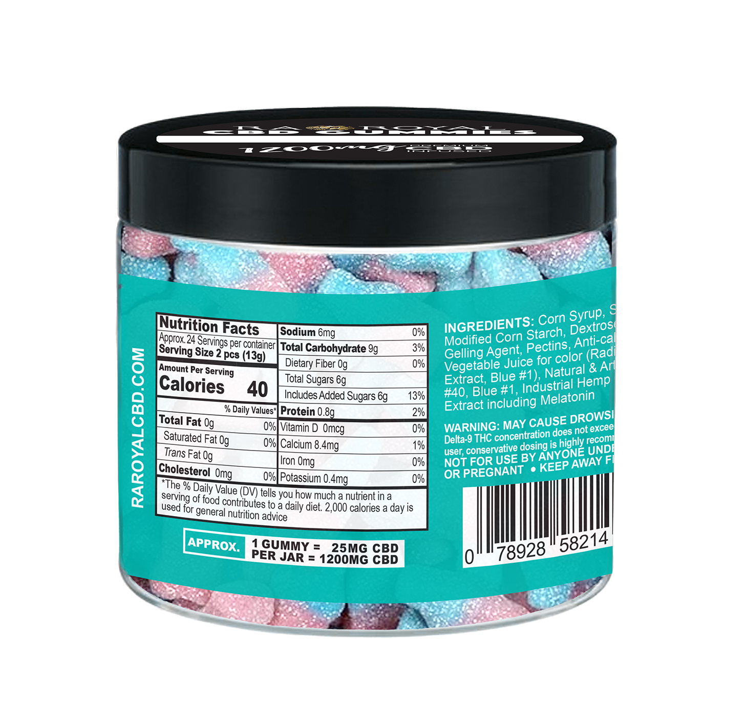 Indulge in a bold burst of flavor with R.A. Royal Gummies: CBD Gummy Bubblegum Cola Jar (1200MG). Each jar is packed with 600MG of pure CBD isolate, delivering a potent and effective CBD experience with every bite. With each gummy’s CBD content varying by flavor, you can easily customize your dosage to meet your unique needs. Infused with melatonin, these tasty gummies are designed to promote relaxation, ease stress, and support a restful night's sleep. The unique Bubblegum Cola flavor combines sweet and refreshing notes, making these gummies a standout treat in your CBD wellness routine. For a flavorful, fun, and powerful CBD solution, choose R.A. Royal 1200MG CBD Bubblegum Cola Gummies — perfect for enhancing calmness, improving sleep quality, and supporting overall well-being.