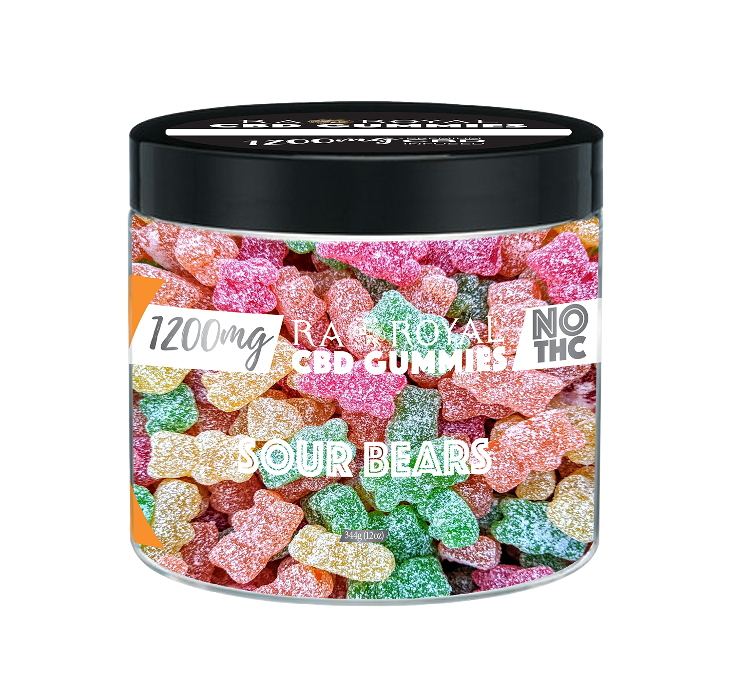 R.A. Royal Gummies: CBD Sour Gummy Bear Jar (1200 MG) is backordered and will ship as soon as it is back in stock.