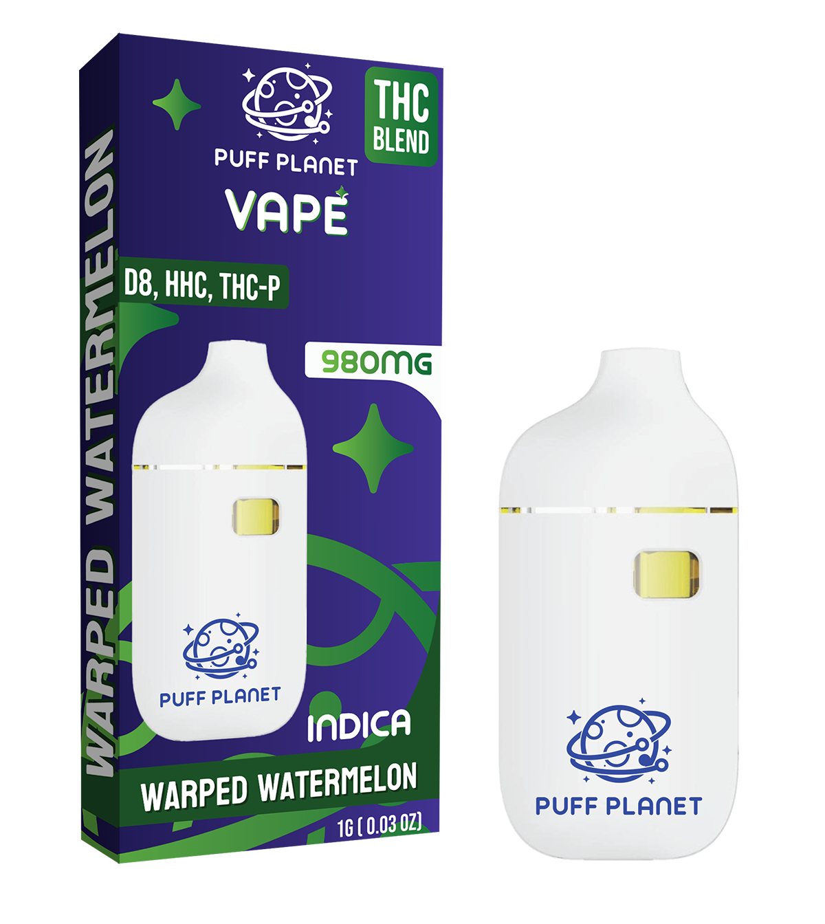 Experience a smoother, stronger, and more elevated vibe with the Puff Planet THC Blend 1ML Vape — a compact powerhouse crafted for flavor, potency, and convenience. Each device delivers a 980mg cannabinoid blend featuring: