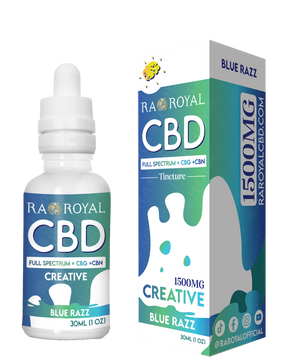 Unleash your creativity with RA Royal’s Full Spectrum CBD Blend 1500MG Tincture in Blue Razz flavor. This vibrant tincture is formulated to support mental clarity, focus, and creativity, combining Full Spectrum CBD, CBG, and CBN for a harmonious blend that helps you stay sharp and inspired. Whether you're brainstorming new ideas or diving deep into your artistic process, this tincture is designed to fuel your creative spark.