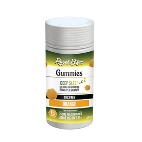 Royal Bitez Orange Deep Sleep Gummies are crafted with a cannabinoid blend designed to promote relaxation and restful sleep. Each gummy contains 50mg CBN and 3mg melatonin for a smooth, THC-free nighttime experience, finished with a bright orange flavor.