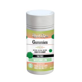Royal Bitez Watermelon Focus Gummies are crafted with a targeted cannabinoid blend designed to support focus and mental clarity. Each gummy combines broad spectrum CBD with CBG and CBN for a smooth, THC-free boost, finished with a refreshing watermelon flavor.