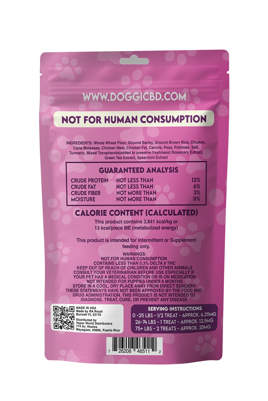 Give your pet the comfort, relief, and daily wellness they deserve with Doggi CBD 500mg Dog Treats. Each pouch contains approximately 40 all-natural treats infused with a total of 500mg broad spectrum CBD — giving your dog effective, consistent support in every bite.