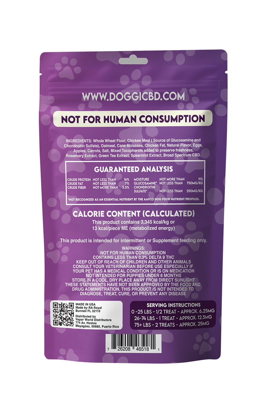 Give your pet the comfort, relief, and daily wellness they deserve with Doggi CBD 500mg Dog Treats. Each pouch contains approximately 40 all-natural treats infused with a total of 500mg broad spectrum CBD — giving your dog effective, consistent support in every bite.