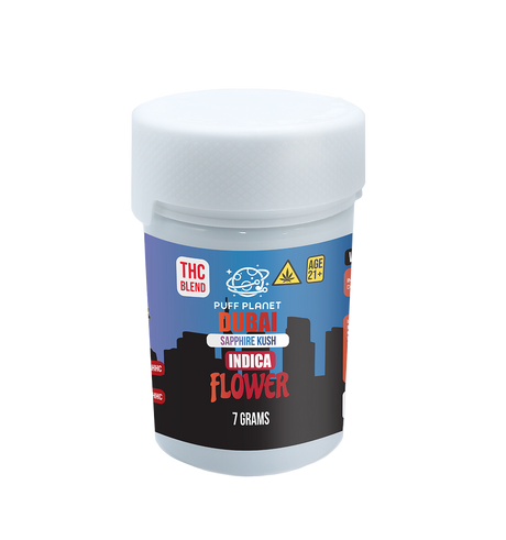 Regular price $24.00Unit priceUnavailablePuff Planet 7G THC Blend Flower: Dubai Sapphire Kush (Indica)
