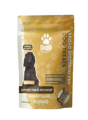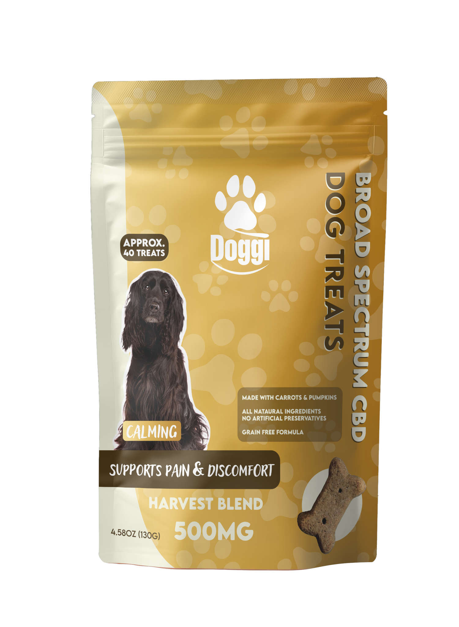 Give your pet the comfort, relief, and daily wellness they deserve with Doggi CBD 500mg Dog Treats. Each pouch contains approximately 40 all-natural treats infused with a total of 500mg broad spectrum CBD — giving your dog effective, consistent support in every bite.