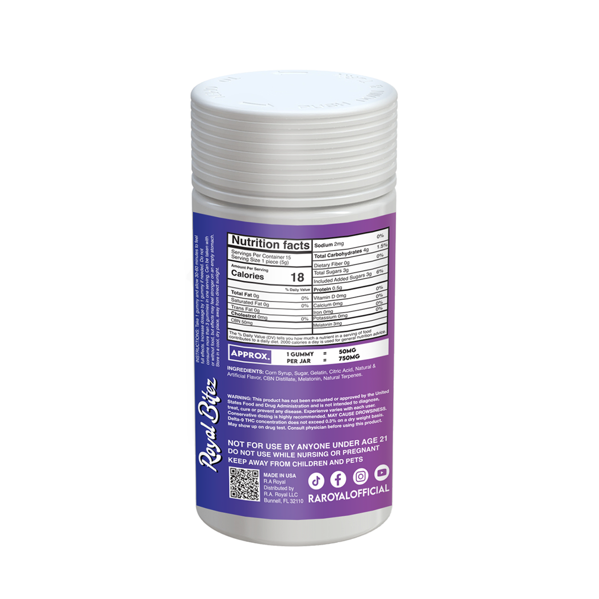 Royal Bitez Deep Sleep 15CT Gummy: Blue Raspberry