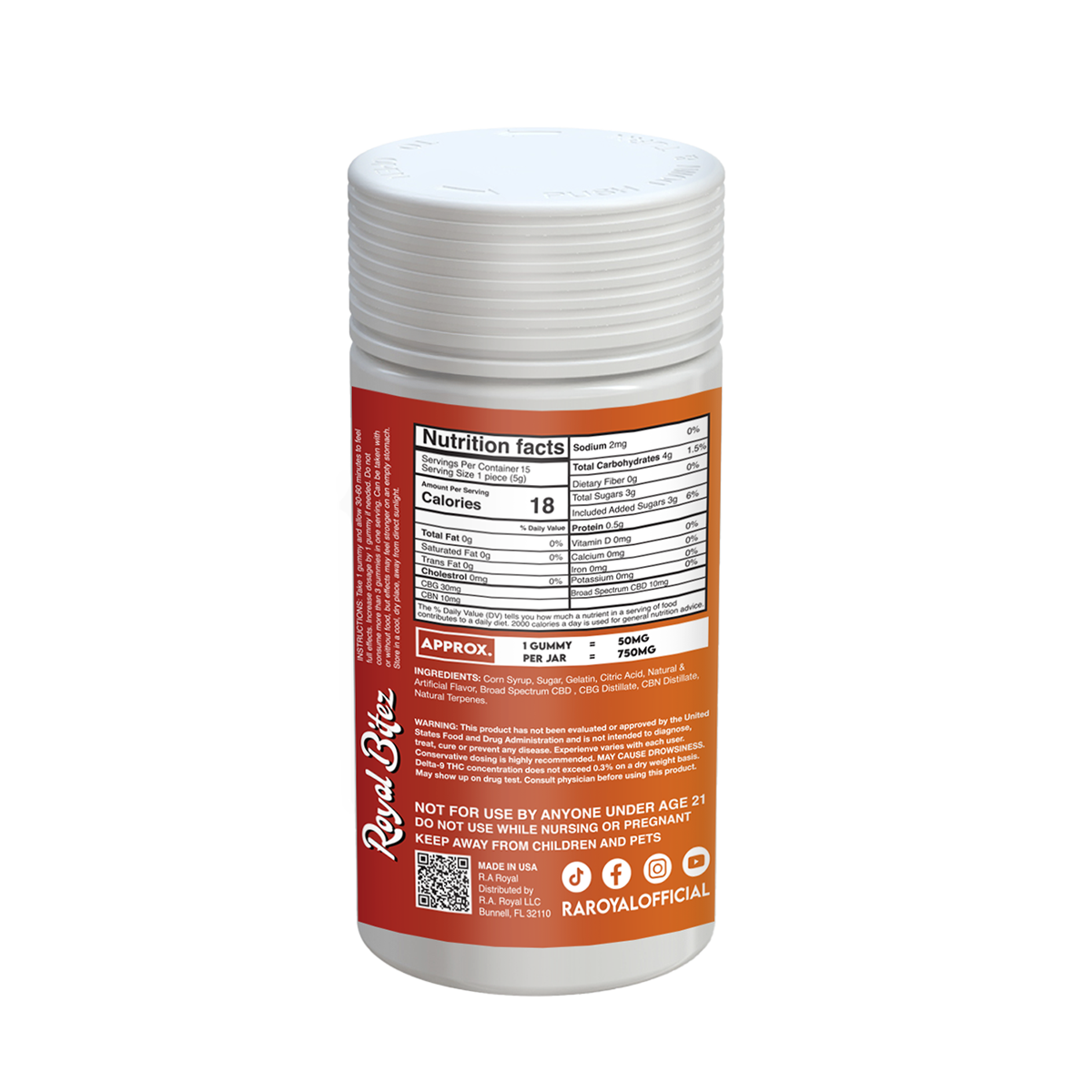 Royal Bitez Focus 15CT Gummy: Orange