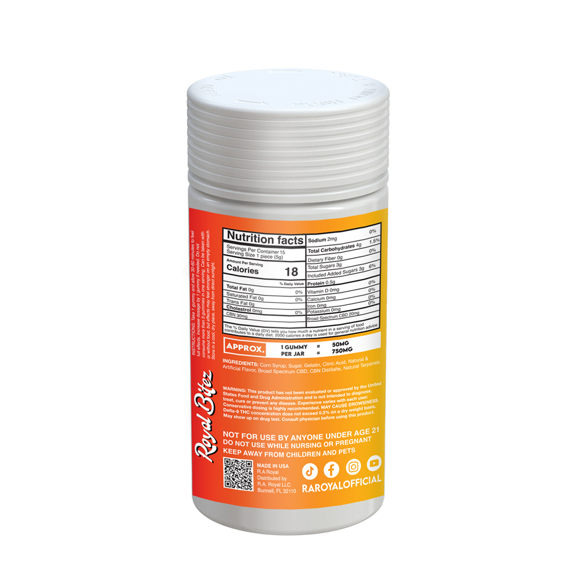 Royal Bitez Relax Strawberry Banana Gummies are formulated to support calm, relaxation, and unwinding anytime you need it. Each gummy features a soothing blend of broad spectrum CBD and CBN, paired with a sweet strawberry banana flavor for a smooth, enjoyable experience.